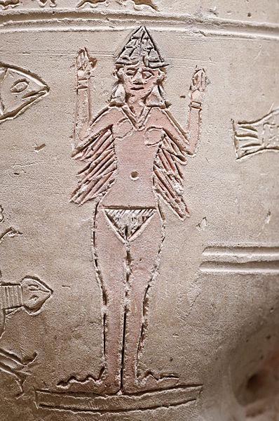 World history speaks to the intense mystery of birth, death and regeneration. In the Neolithic and Bronze Ages, the goddess held within herself the continuum of life. Her icons of the bird (breath of of life, fertility) and snake (barrenness and death, rebirth) inspired reverence and awe. This image of the winged Ishtar on a vase from 2000 BCE is housed in the Louvre.